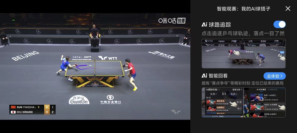 本次大满贯,咪咕重磅应用的AI智能观赛“四件套”带来了革命性观赛体验。AI智能落点轨迹、AI智能落点热力图及AI智能翻译中文字幕作为首次亮相的功能,与成熟的AI智能打点相结合,直击观赛痛点。用户赛后拖动进度条即可“一键回看精彩瞬间”,彻底解决了“错过关键画面”的遗憾。而实时生成的球路轨迹与落点热力图,则将球员的战术布局直观可视化,让球迷不仅能“看热闹”,更能“懂门道”。