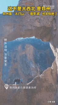 谁说壮丽山水只在远方?郑州新密寨沟村的矿坑湖,一汪碧水托起整片天空,“天窗”如画框锁住四季光影。