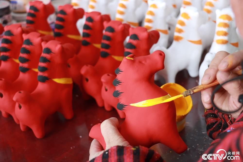 春节临近,河南省鹤壁市浚县杨玘屯村的民间艺人忙着创作泥咕咕作品,供应年货市场。