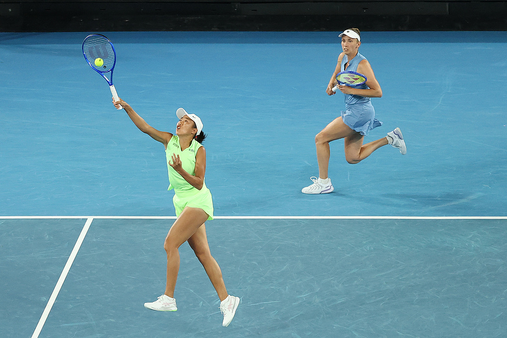 1月29日,在2026年澳大利亚网球公开赛女双半决赛中,中国选手张帅搭档比利时选手梅尔滕斯战胜跨国组合柴原瑛菜/兹沃娜列娃,闯入决赛。